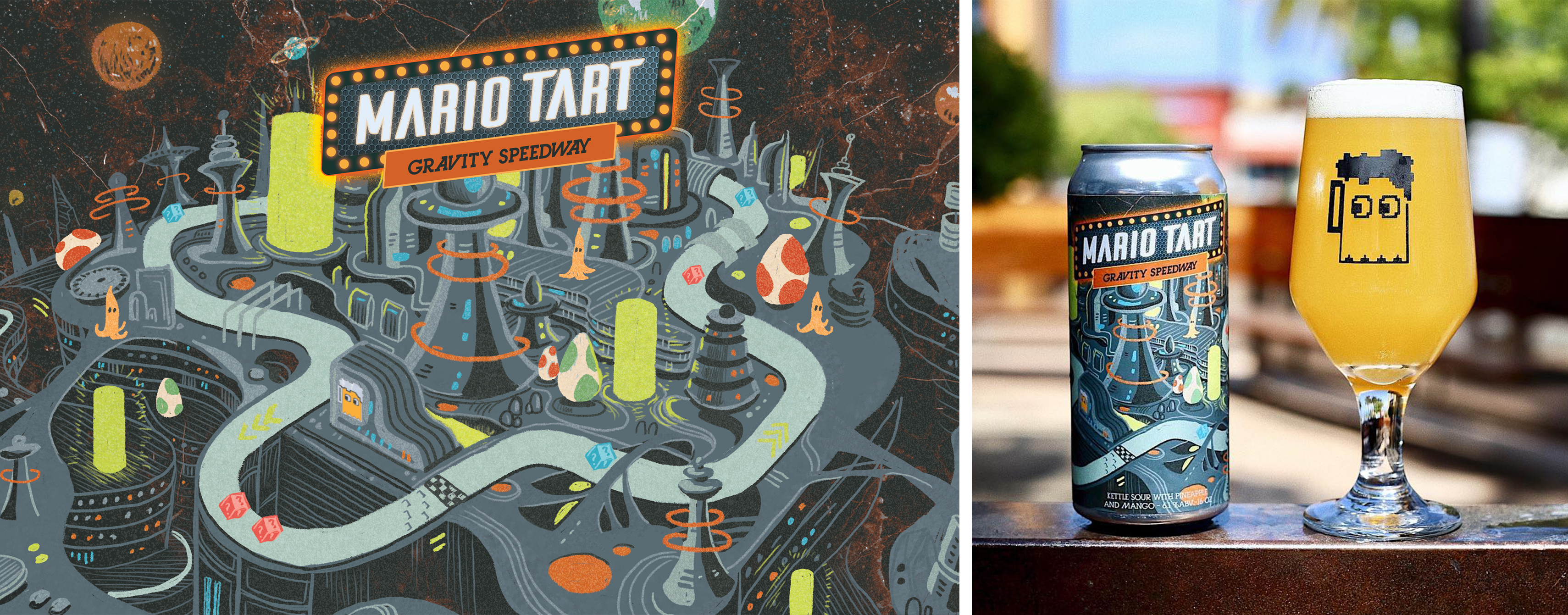 Label Illustration-8bit Brewing Company-Mario tart series-Gravity speedway