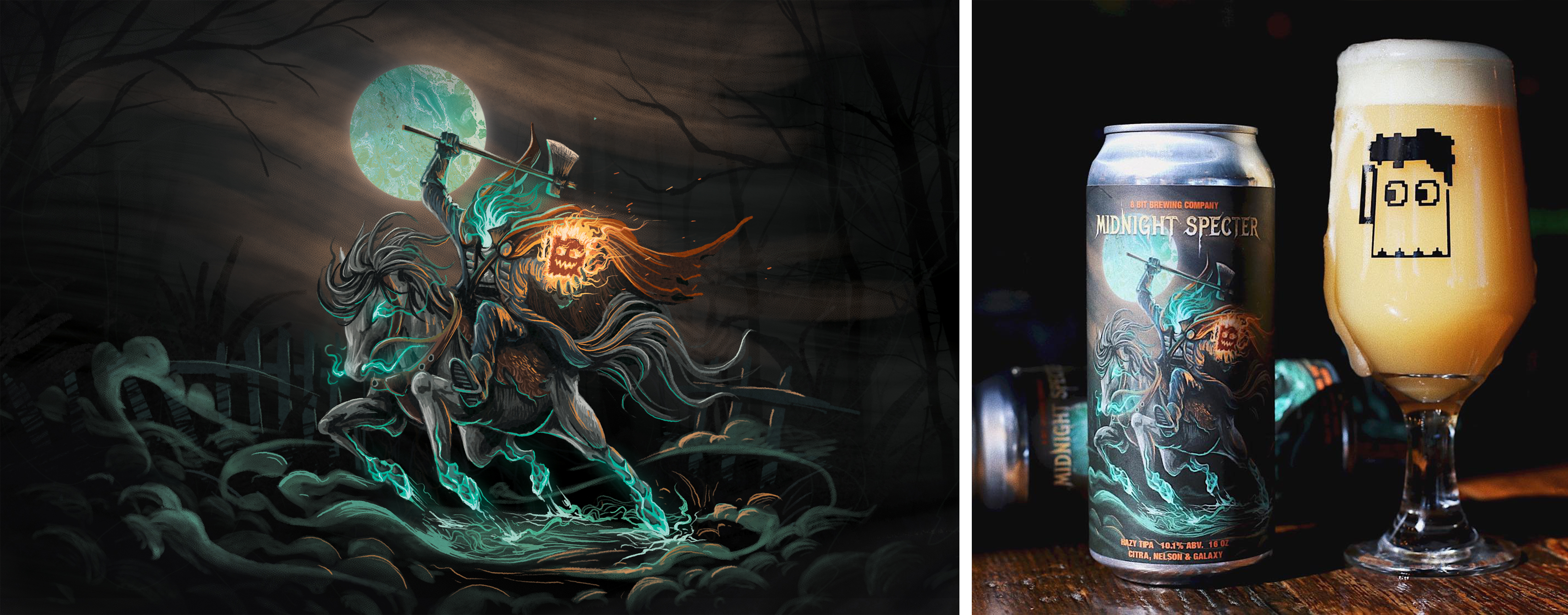 Label Illustration-8bit Brewing Company-Midnight specter