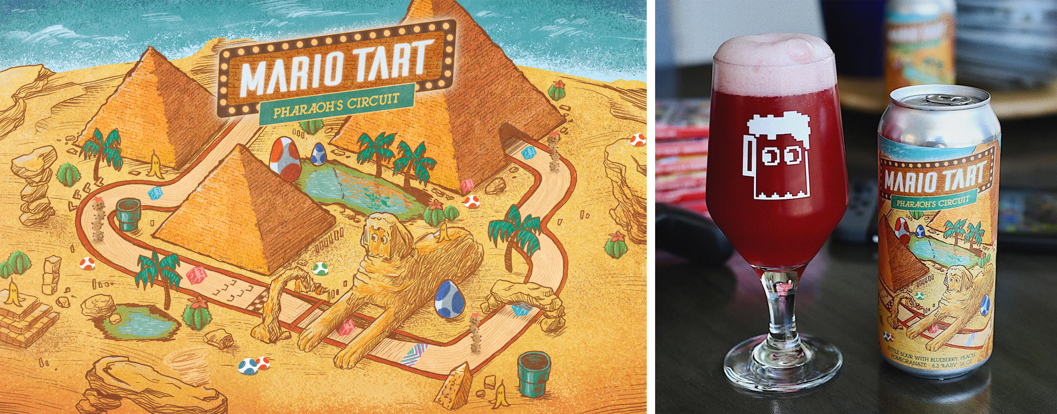 Label Illustration-8bit Brewing Company-Mario tart series-Pharaoh's circuit