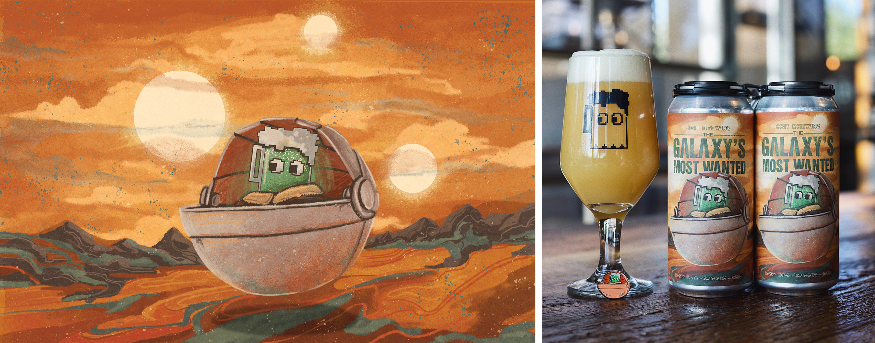 Label Illustration-8bit Brewing Company-The galaxy's most wanted