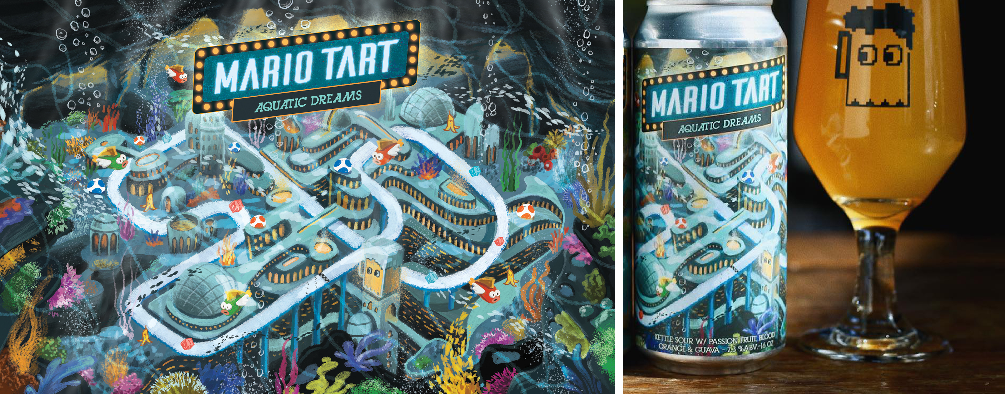 Label Illustration-8bit Brewing Company-Mario tart series-Aquatic dreams