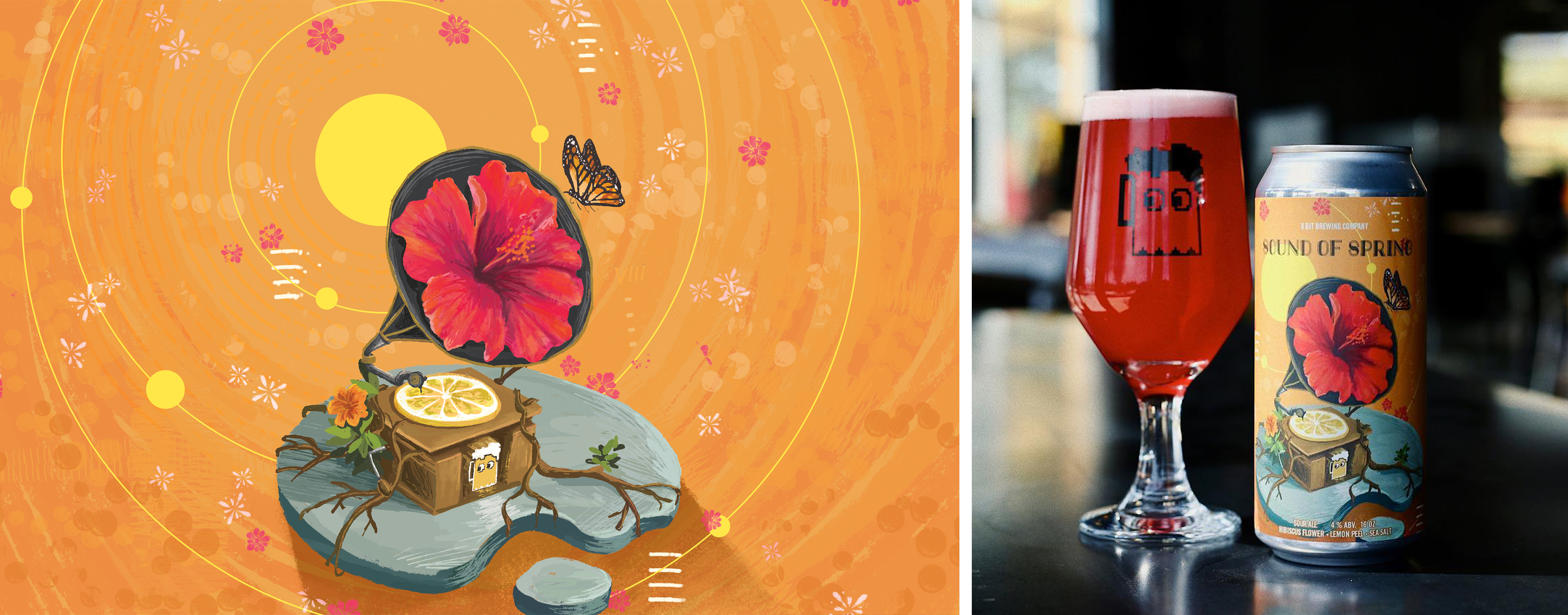 Label Illustration-8bit Brewing Company-Sound of spring