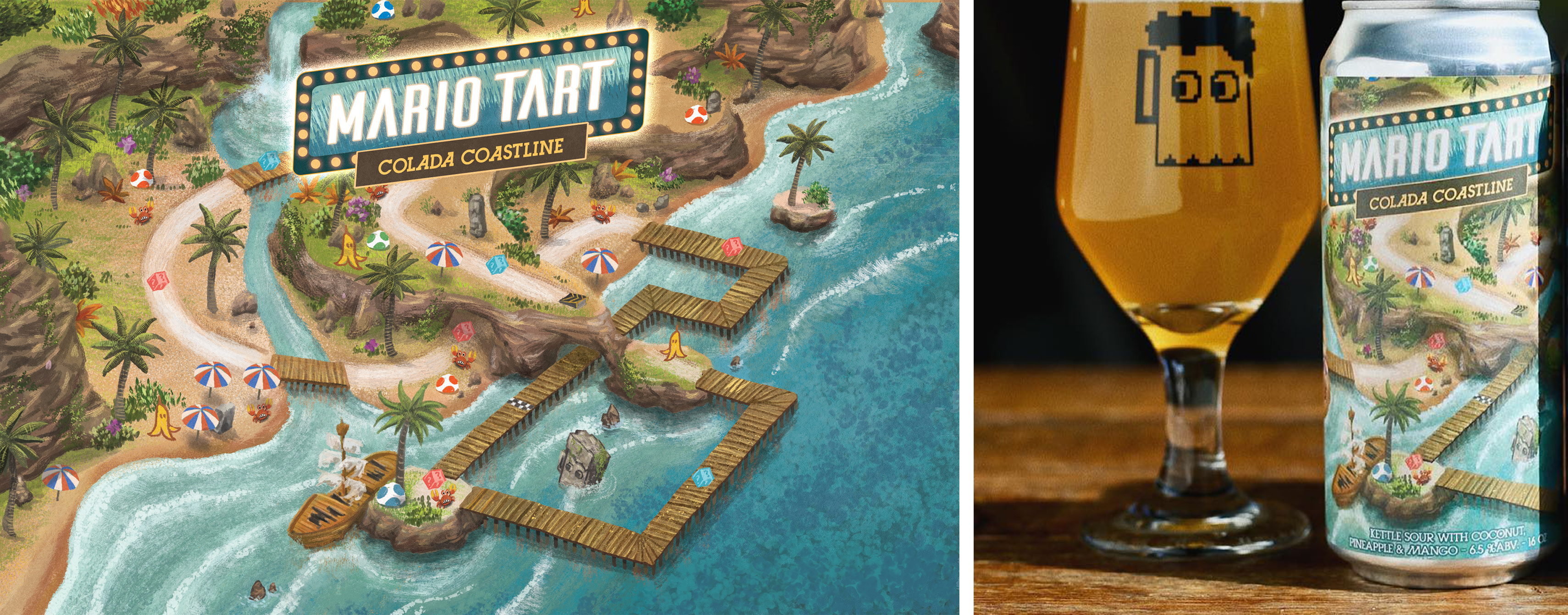 Label Illustration-8bit Brewing Company-Mario tart series-Colada coastline